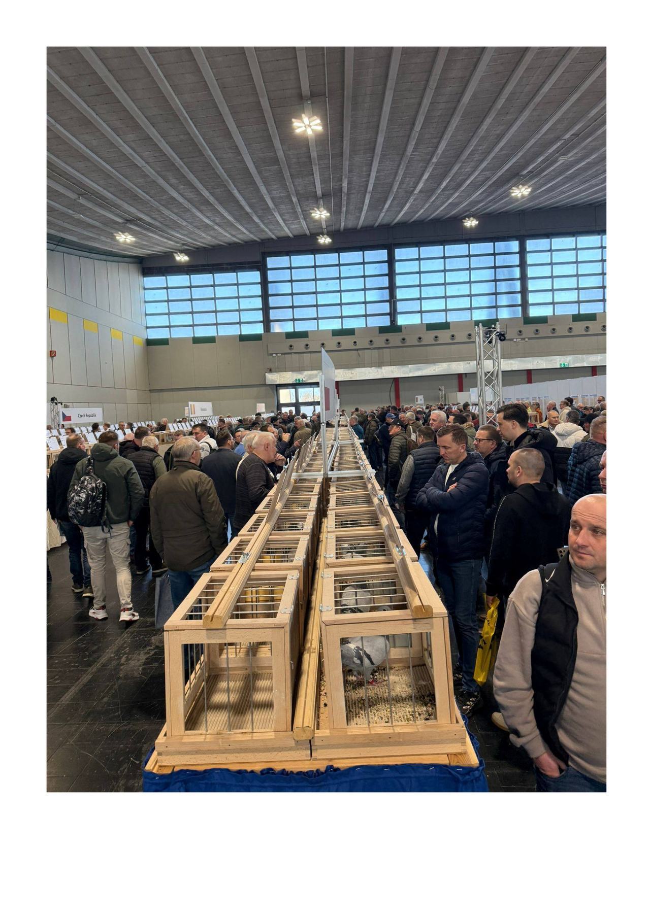 500人以上集まった記念のチャリティ競売、日本行き鳩一羽落札しました。