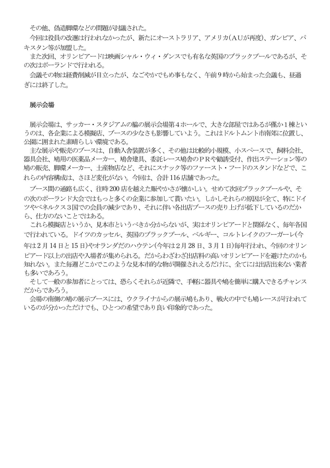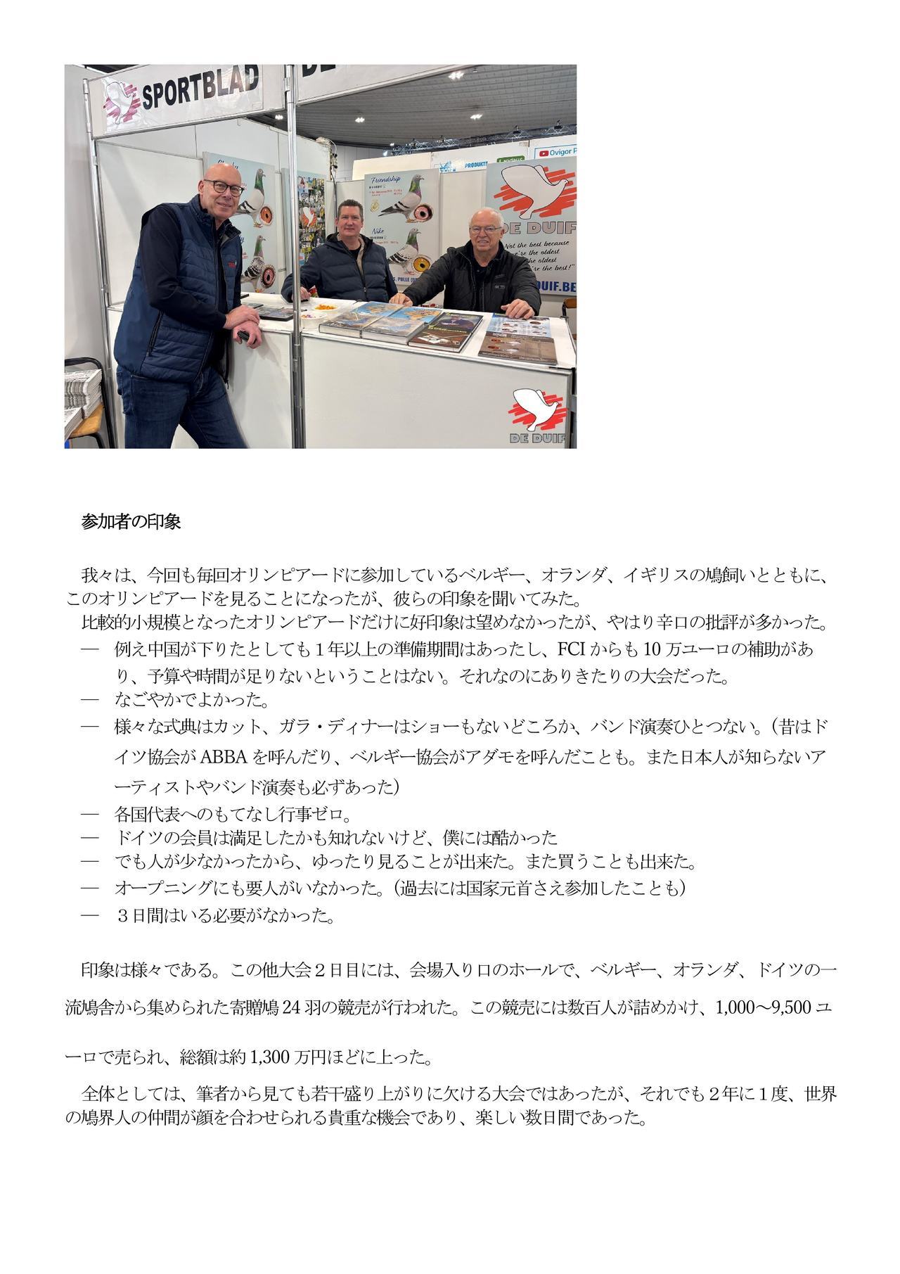 ●その他上位の有名鳩舎 ベルギーN順位 5.(国際29位)デヴィールト未亡人&息子達 7.42.エチエンヌ・メイルラーン 8.デスメイター=レスチアン 28.43.50.ノエル・ペイレン オランダN順位 5.27.ヤン・ポルダー 10.37.バーテンブルグ=ファンデメルヴェ 20.23.38.フェルヴェイ=ド・ハーン 49.H.ヴァイナンツ父子
